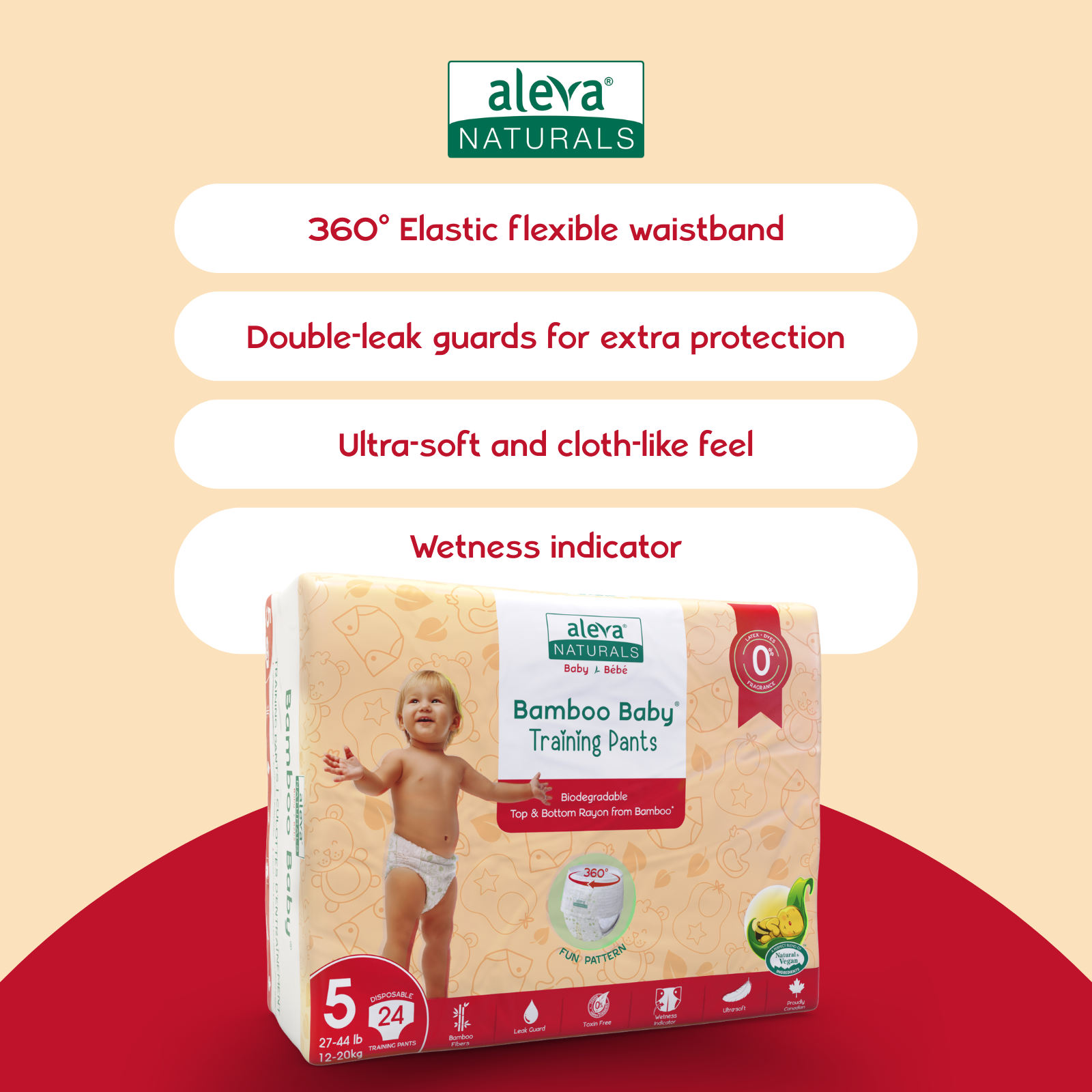 Aleva Naturals® Bamboo Baby® Training Pants - Size 5 (27 - 44 lbs/ 12 - 20 kg) - 24ct