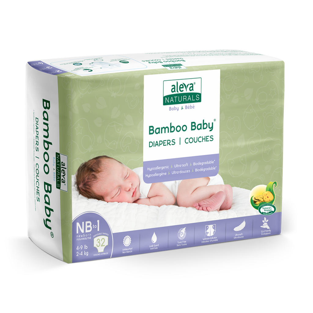Aleva Naturals® Bamboo Baby® Diapers - NB to Size 1 ( 4-9lbs) - 32 Count