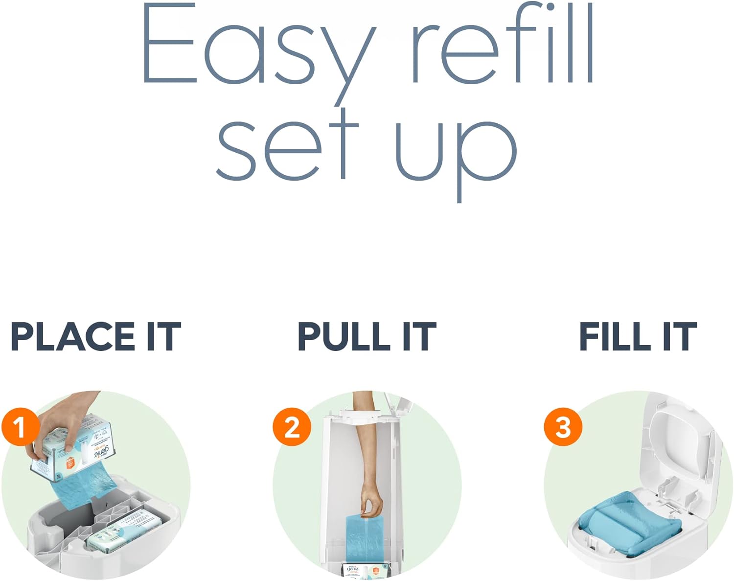 ·Easy to Setup: Bottom to Top, The EASY ROLL refills nest into the bottom of the pail and the refill bags pull up conveniently and are perforated towards the top of the pail.